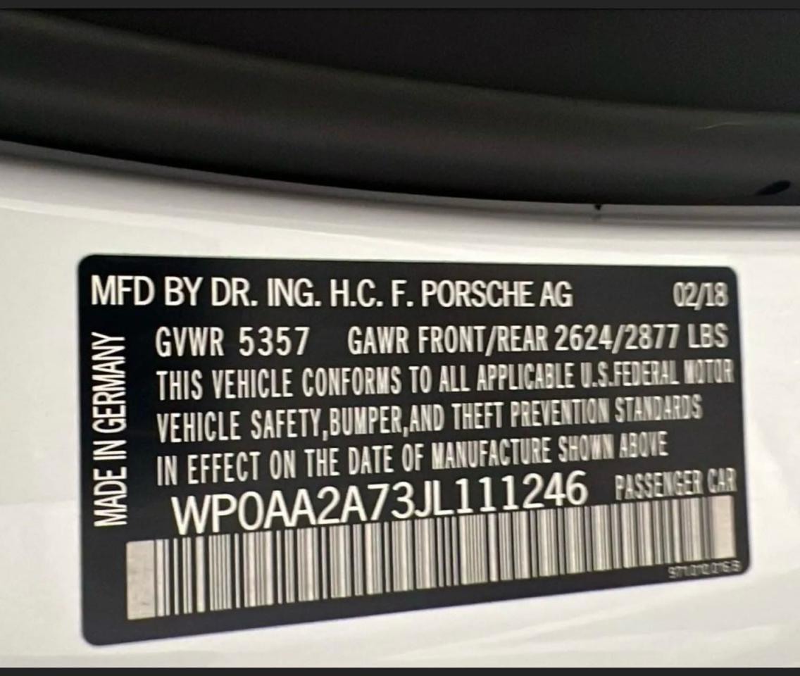 Колір БілийЦиліндри 6Привід Задній привідVIN WP0AA2A73JL111246Стан Заводиться та їде (перевірено)Ушкодження НезначніДата аукціона 2025-10-09