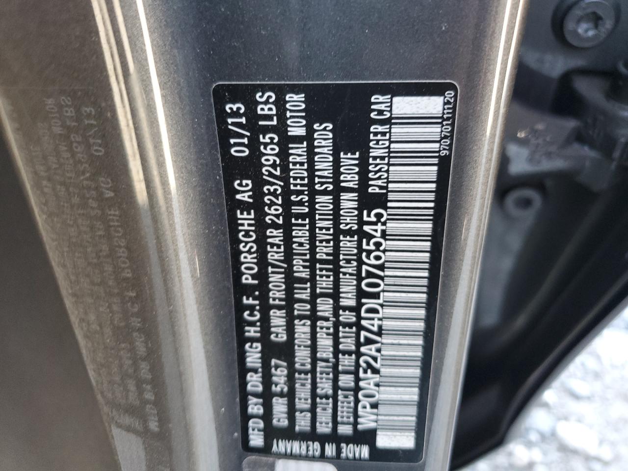 2013 PORSCHE PANAMERA - WP0AF2A74DL076545, колір - Деревне вугілля, 4.8, Бензин, Повний привід із США