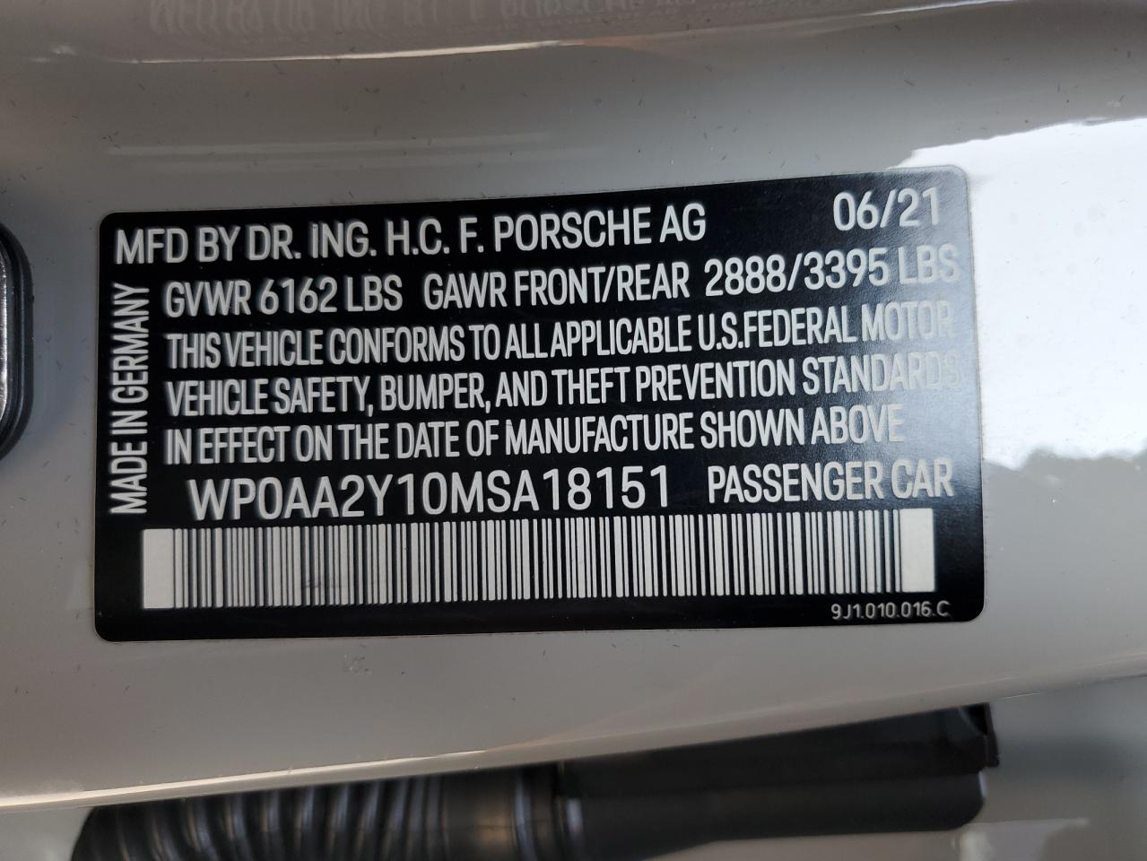 2021 PORSCHE TAYCAN - WP0AA2Y10MSA18151, колір - Сірий, , Електричний, Задній привід із США