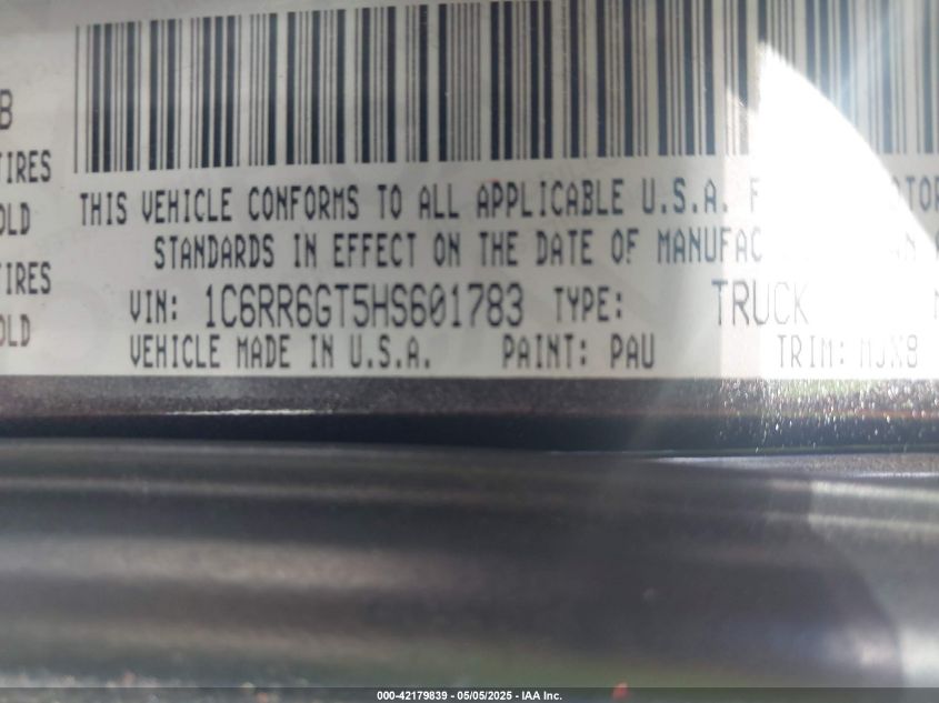 2017 RAM 1500 - 1C6RR6GT5HS601783, колір - Сірий, 5.7, Бензин, із США