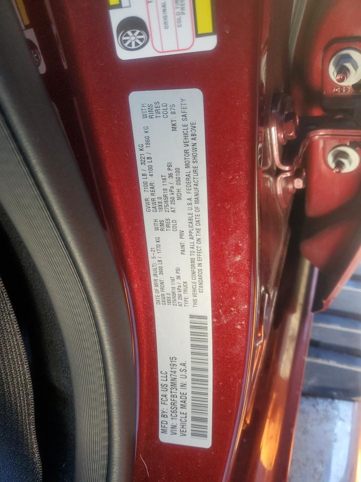 2021 RAM 1500 - 1C6SRFBT3MN741915, колір - Бордовий, 5.7, Бензин, 4x4 з заднім приводом із США