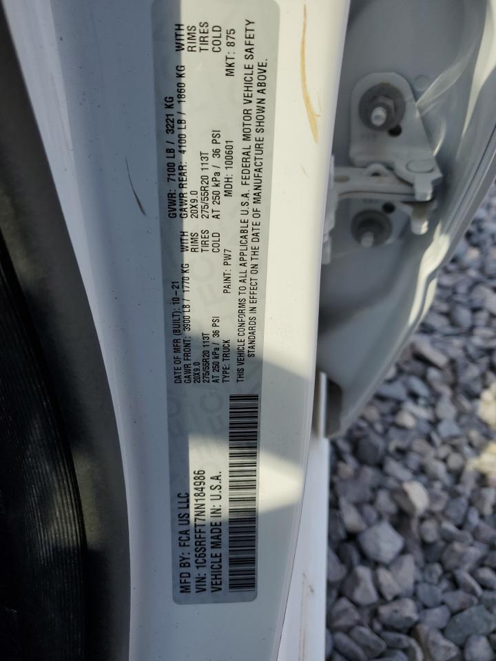 2022 RAM 1500 - 1C6SRFFT7NN184986, колір - Білий, 5.7, Бензин, 4x4 з заднім приводом із США