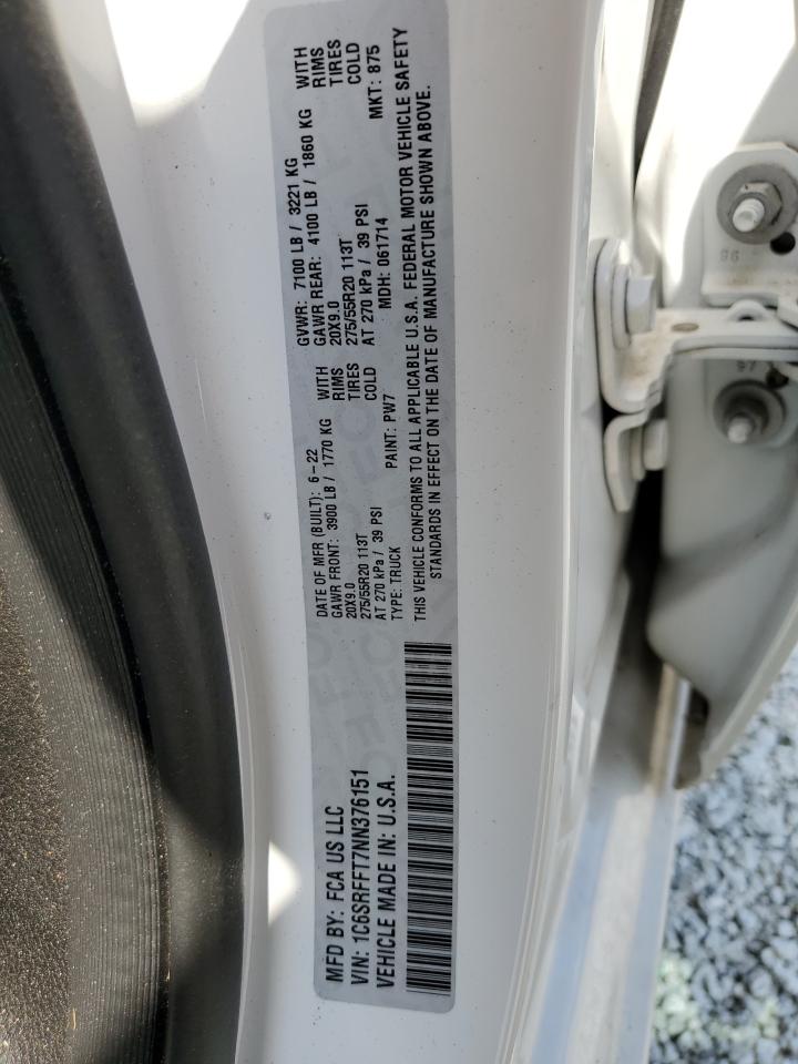 2022 RAM 1500 - 1C6SRFFT7NN376151, колір - Білий, 5.7, Бензин, 4x4 з заднім приводом із США