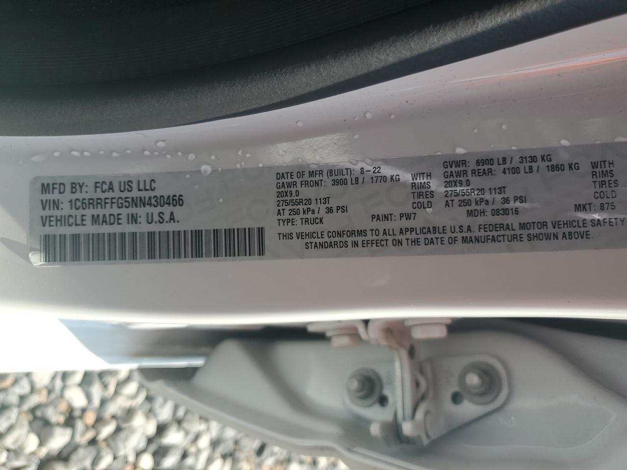 2022 RAM 1500 - 1C6RRFFG5NN430466, колір - Білий, 3.6, Бензин, 4x4 з заднім приводом із США