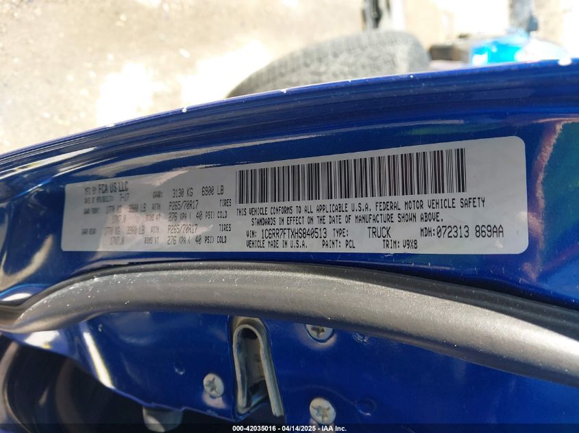 2017 RAM 1500 - 1C6RR7FTXHS840513, колір - Синій, 5.7, Бензин, Повний привід із США