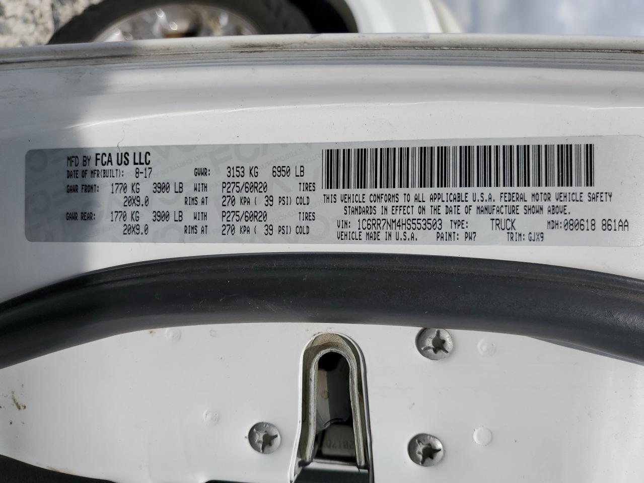 Колір БілийЦиліндри 6Привід 4x4 з заднім приводомVIN 1C6RR7NM4HS553503Стан НевідомоУшкодження НезначніДата аукціона 2025-10-09