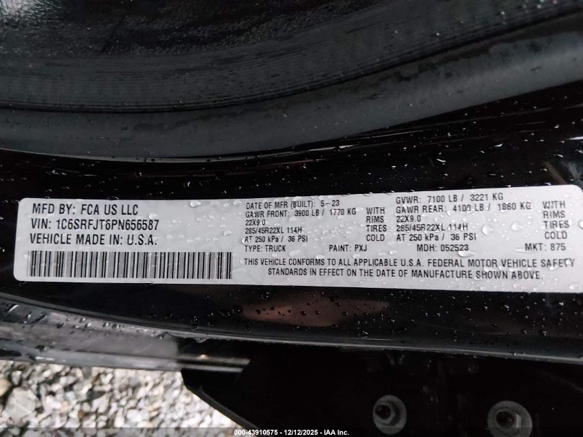 Колір ЧорнийЦиліндри 8Привід Повний привідVIN 1C6SRFJT6PN656587Стан Заводиться та їде (перевірено)Ушкодження Права сторона