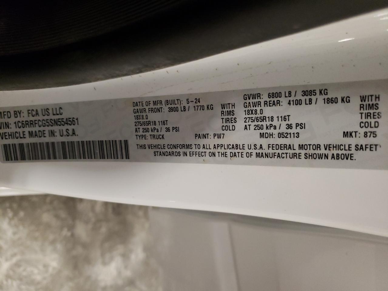 2025 RAM 1500 - 1C6RRFCG5SN554561, колір - Білий, 3.6, Бензин, 4x4 з заднім приводом із США