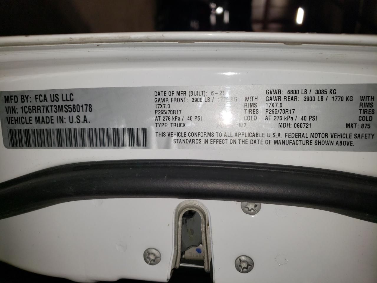 2021 RAM 1500 - 1C6RR7KT3MS580178, колір - Білий, 5.7, Бензин, 4x4 з заднім приводом із США