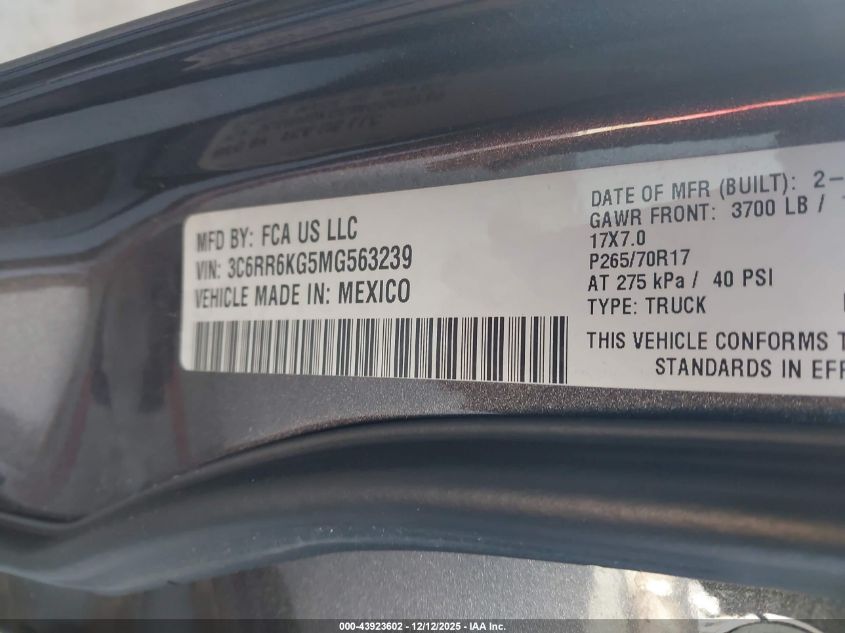 2021 RAM 1500 - 3C6RR6KG5MG563239, колір - Сірий, 3.6, Бензин, із США