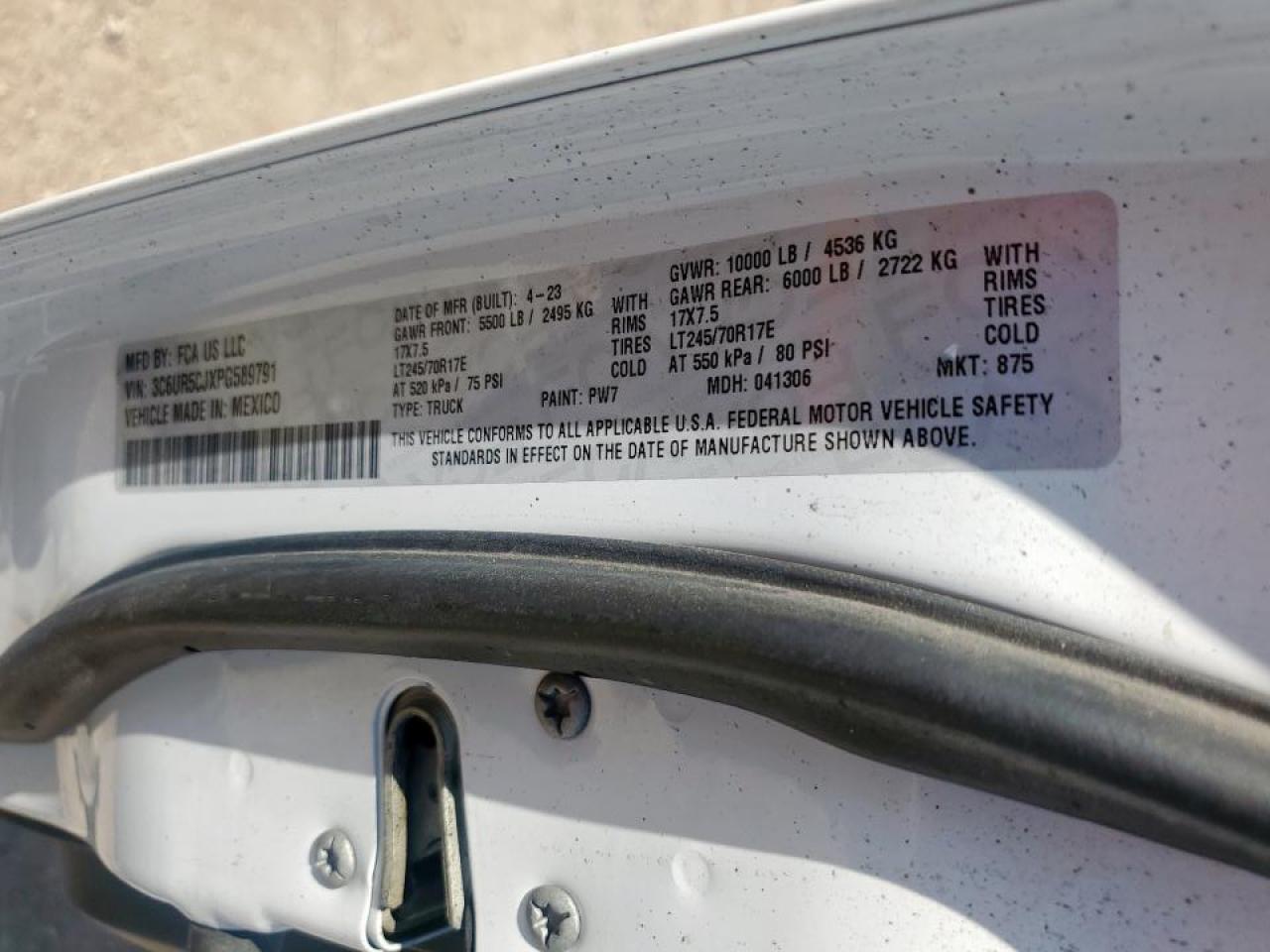 2023 RAM 2500 - 3C6UR5CJXPG589791, колір - Білий, 6.4, Бензин, 4x4 з заднім приводом із США