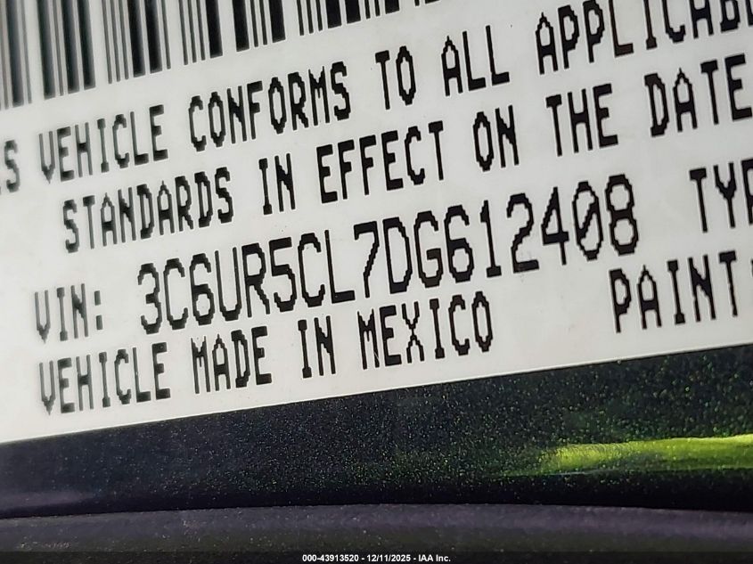 Колір ЧорнийЦиліндри 6Привід Повний привідVIN 3C6UR5CL7DG612408Стан СтаціонарноУшкодження Передня або задня