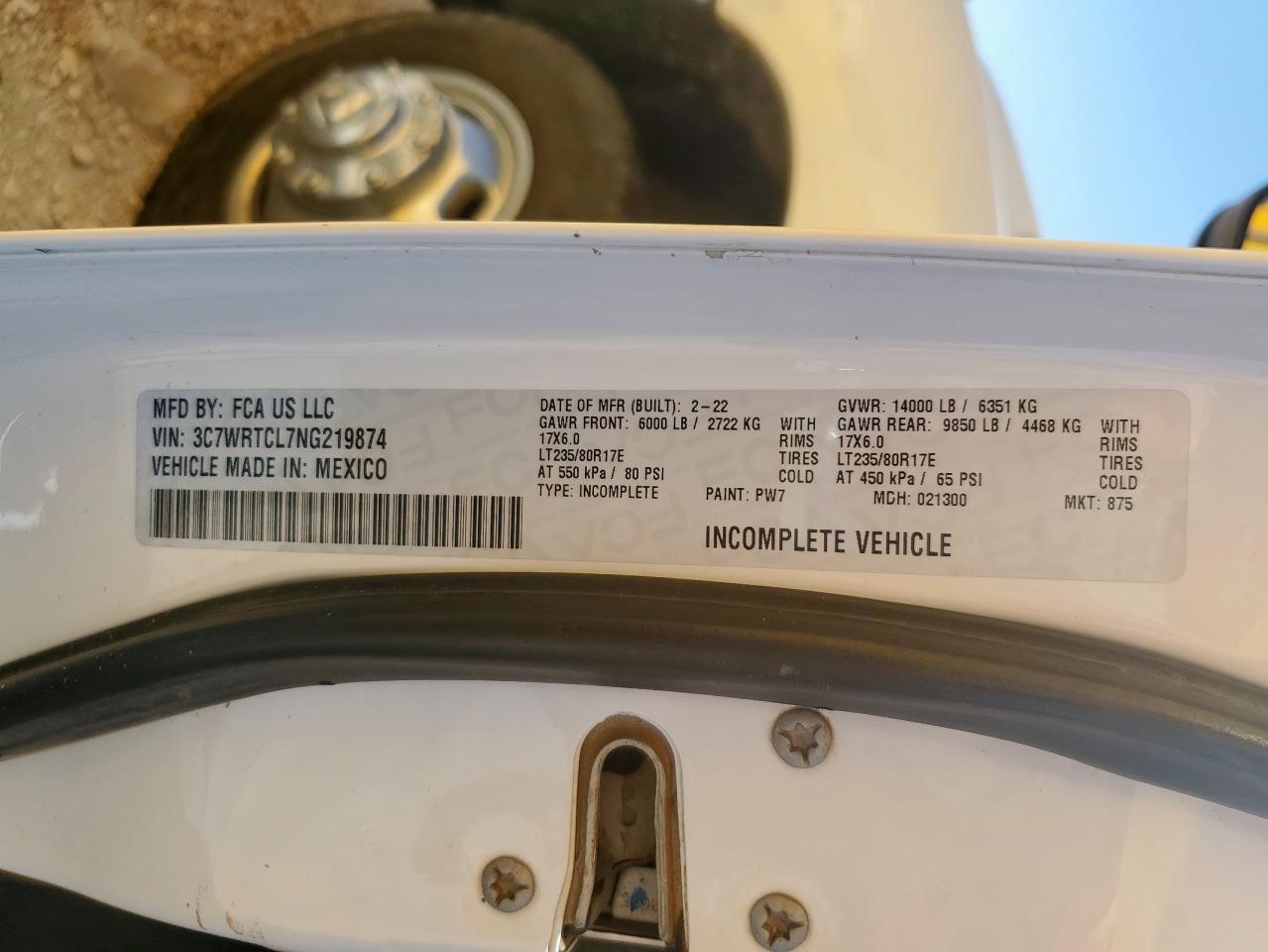Колір БілийЦиліндри 6Привід 4x4 з заднім приводомVIN 3C7WRTCL7NG219874Стан Заводиться та їде (перевірено)Ушкодження НезначніДата аукціона 2025-10-13