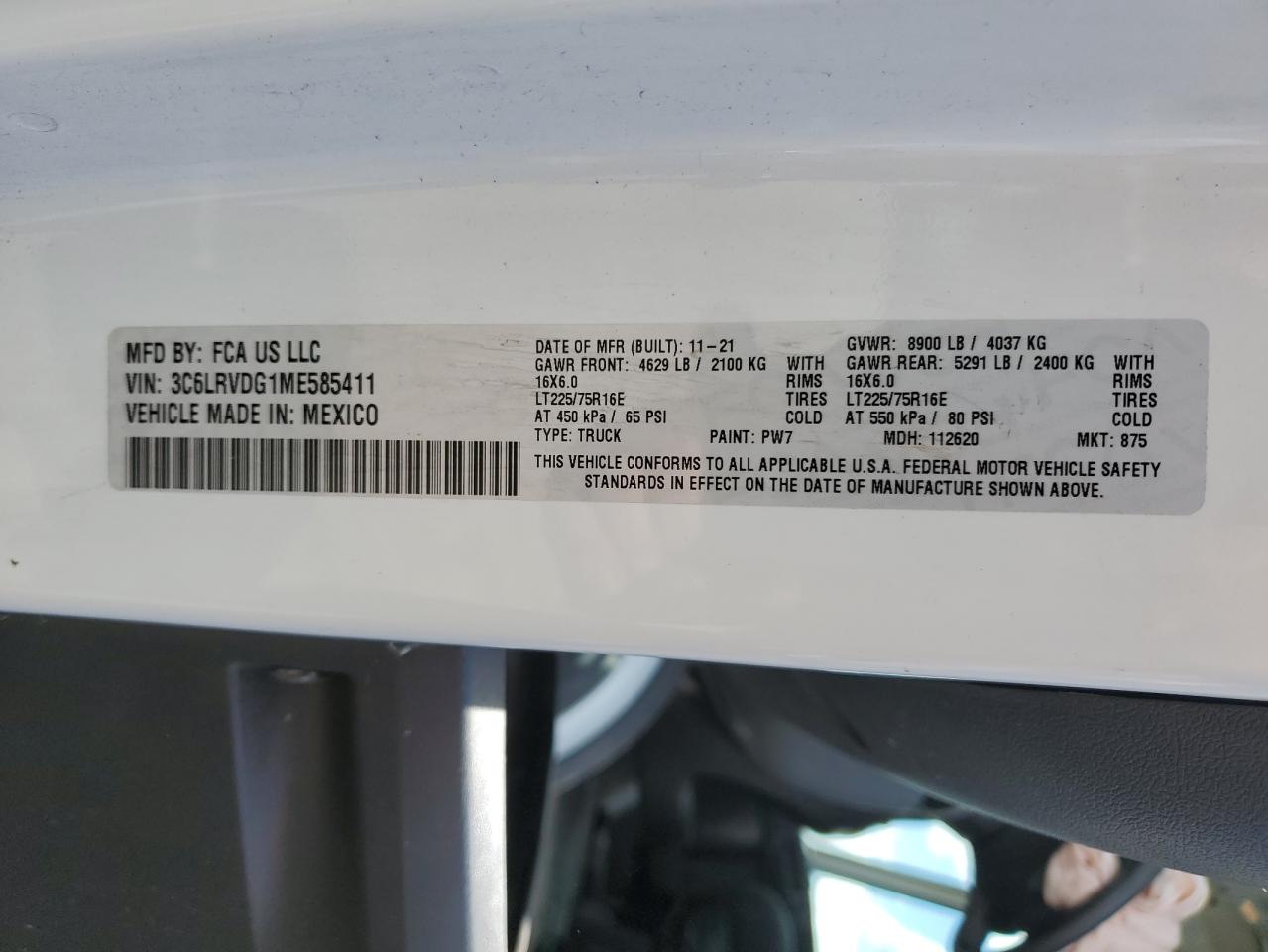 Колір БілийЦиліндри 6VIN 3C6LRVDG1ME585411Стан Заводиться та їде (перевірено)Ушкодження Передня або задняДата аукціона 2025-10-08