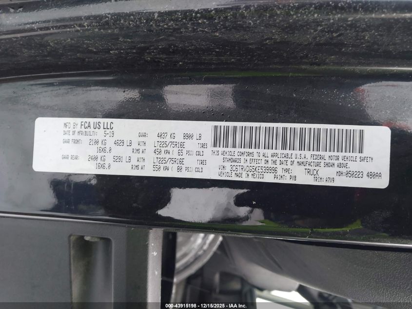 2019 RAM PROMASTER 2500 - 3C6TRVDG5KE539996, колір - Чорний, 3.6, Бензин, Передній привід із США