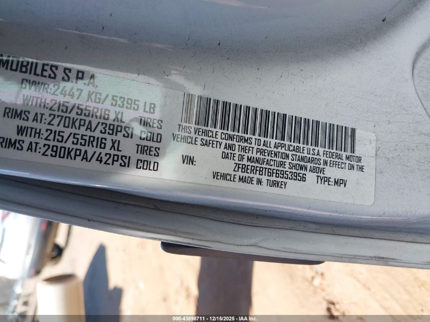 Колір БілийЦиліндри 4Привід Передній привідVIN ZFBERFBT6F6953956Стан Заводиться та їде (перевірено)Ушкодження Передня права