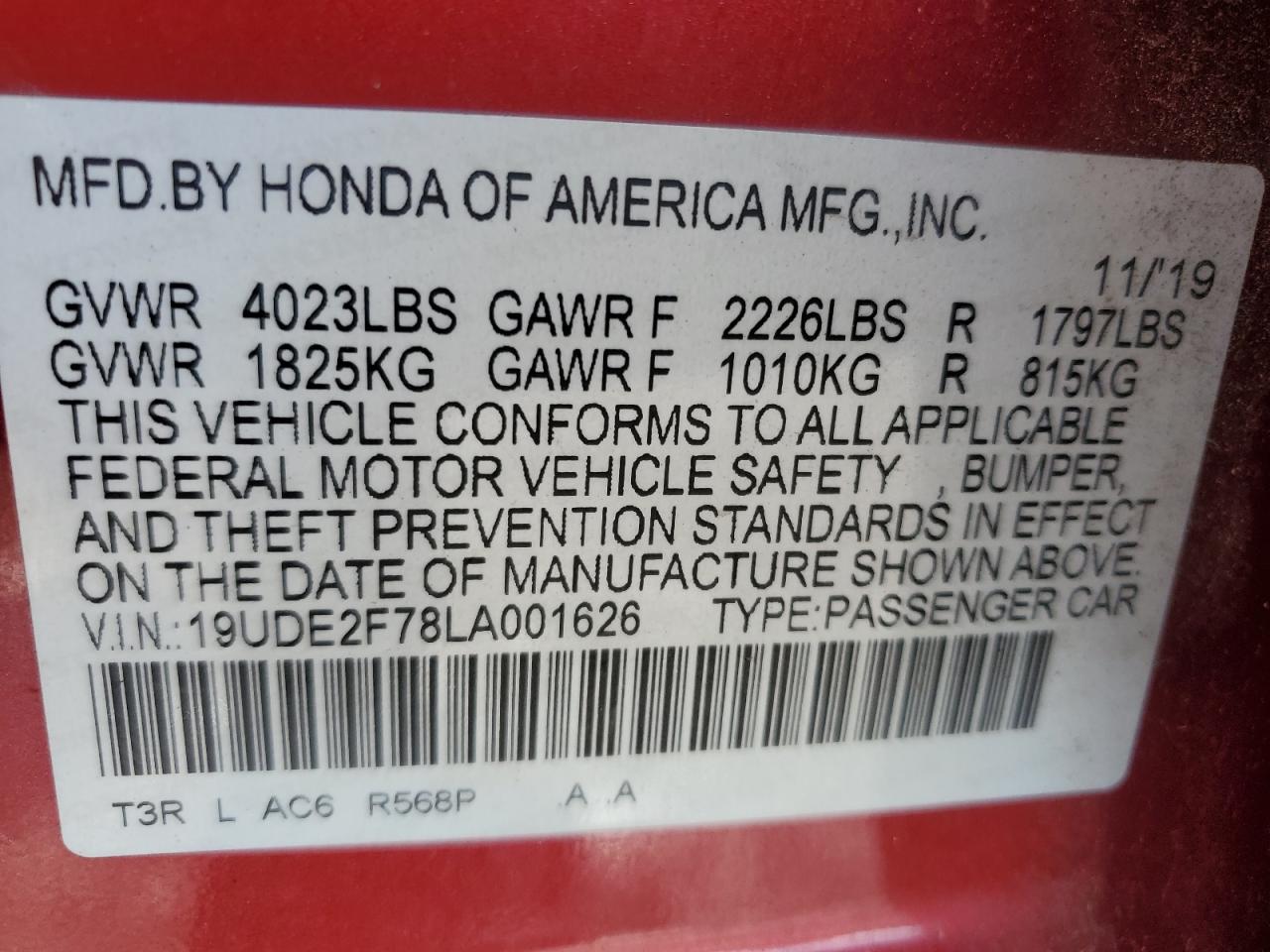2020 ACURA ILX - 19UDE2F78LA001626, цвет - Красный, 2.4, Бензин, из США