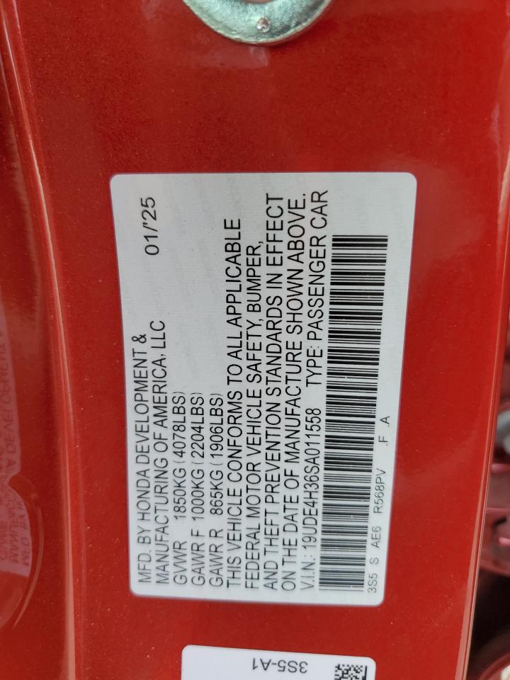 2025 ACURA INTEGRA - 19UDE4H36SA011558, цвет - Красный, 1.5, Бензин, из США