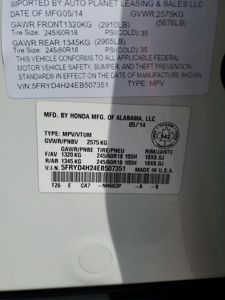Цвет БелыйЦилиндры 6Привод Полный приводVIN 5FRYD4H24EB507351Состояние Заводится и едет (проверено)Повреждения По бокамДата аукциона 2025-10-07