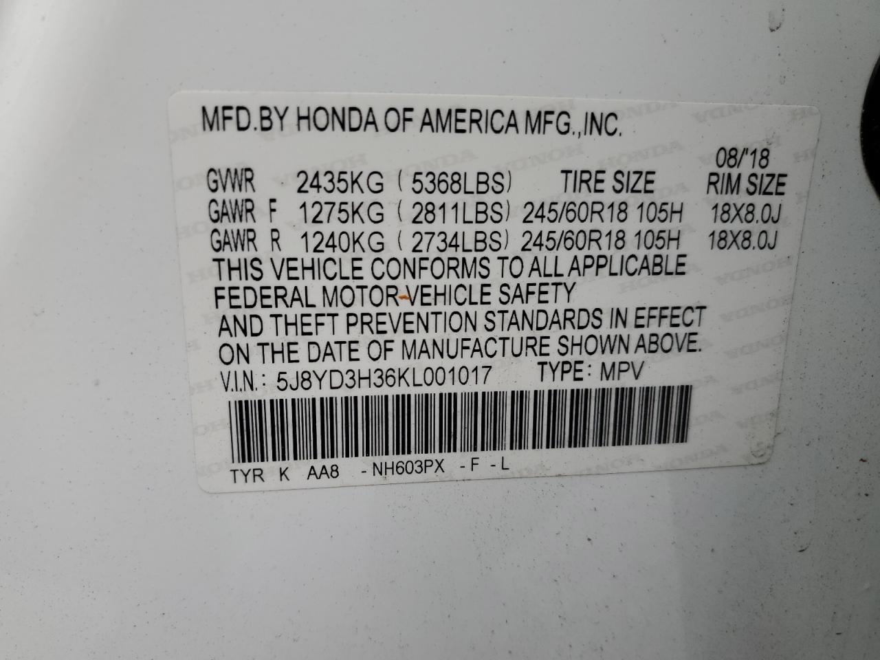 Цвет КремовыйЦилиндры 6VIN 5J8YD3H36KL001017Состояние Заводится и едет (проверено)Повреждения ЗадняяДата аукциона 2025-10-07