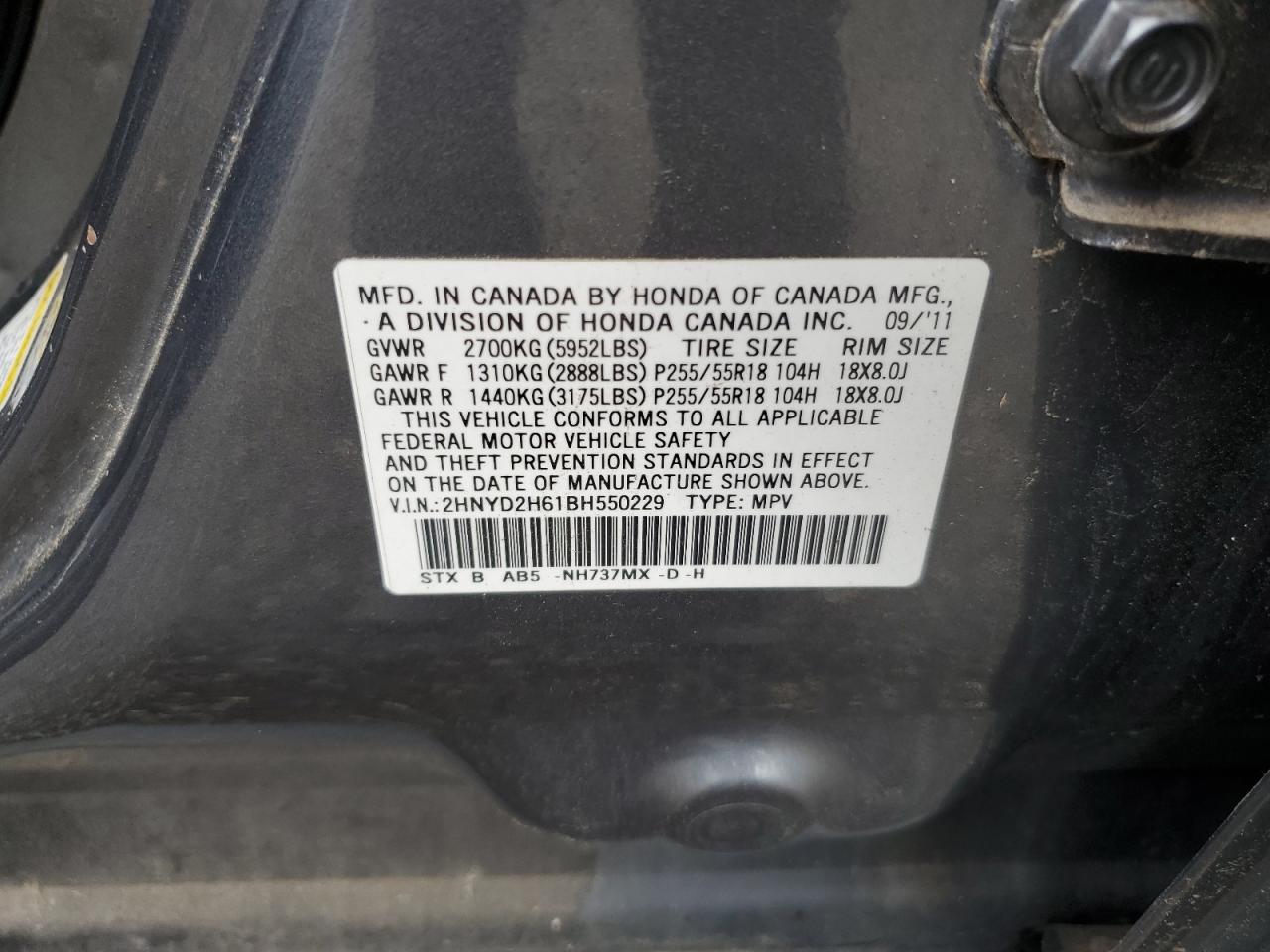 Цвет СерыйЦилиндры 6Привод Полный приводVIN 2HNYD2H61BH550229Состояние Заводится и едет (проверено)Повреждения НезначительныеДата аукциона 2025-10-07