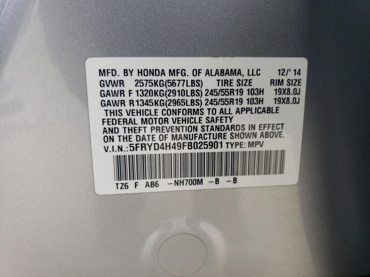 Цвет СеребряныйЦилиндры 6Привод Полный приводVIN 5FRYD4H49FB025901Состояние НеизвестноПовреждения Передняя или задняяДата аукциона 2025-10-14