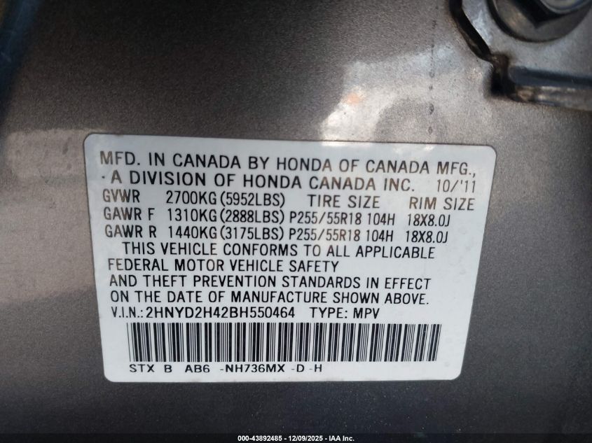 Цвет СерыйЦилиндры 6Привод Полный приводVIN 2HNYD2H42BH550464Состояние СтационарноПовреждения Передняя или задняя