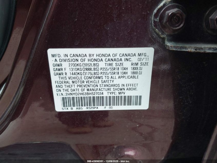 Цвет БургундияЦилиндры 6Привод Полный приводVIN 2HNYD2H63BH527034Состояние Заводится и едет (проверено)Повреждения Левая сторона