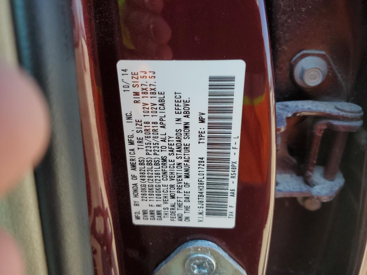 2015 ACURA RDX - 5J8TB4H38FL017294, цвет - Бургундия, 3.5, Бензин, Полный привод из США