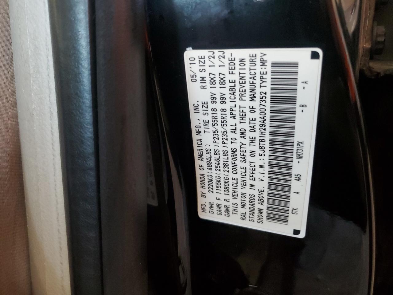 2010 ACURA RDX - 5J8TB1H29AA007352, цвет - Черный, 2.3, Бензин, Полный привод из США