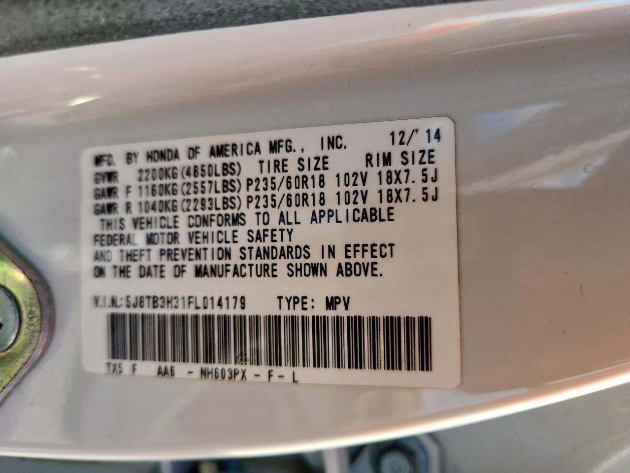 Цвет БелыйЦилиндры 6VIN 5J8TB3H31FL014179Состояние Заводится и едет (проверено)Повреждения По бокам