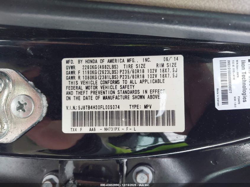 2015 ACURA RDX - 5J8TB4H30FL005074, цвет - Черный, 3.5, Бензин, Полный привод из США