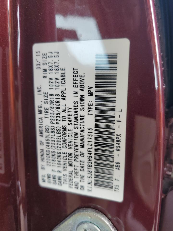 2015 ACURA RDX - 5J8TB3H54FL017515, цвет - Бургундия, 3.5, Бензин, из США