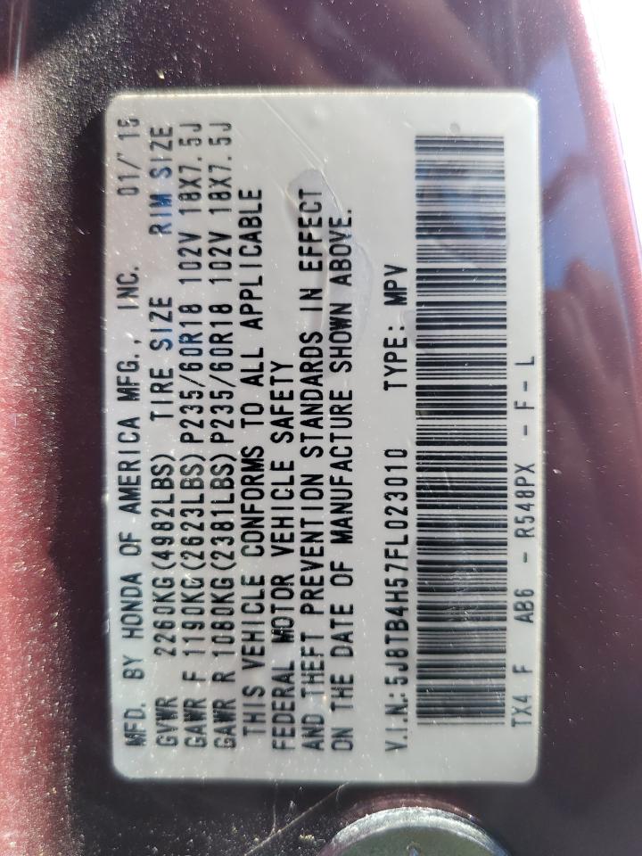2015 ACURA RDX - 5J8TB4H57FL023010, цвет - Бургундия, 3.5, Бензин, Полный привод из США