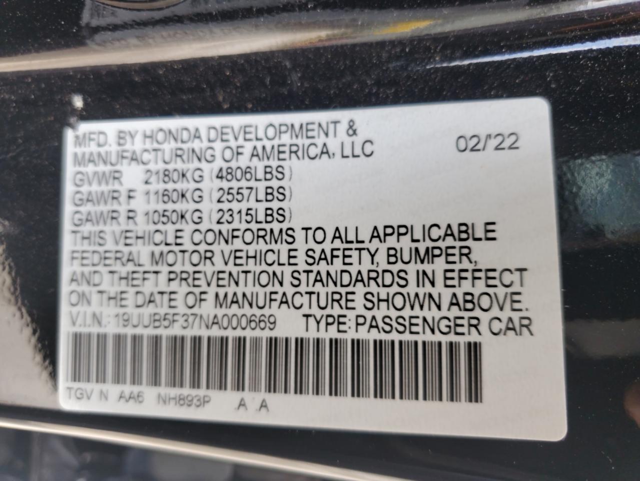 Цвет ЧерныйЦилиндры 4VIN 19UUB5F37NA000669Состояние Заводится и едет (проверено)Повреждения Передняя или задняяДата аукциона 2025-10-08