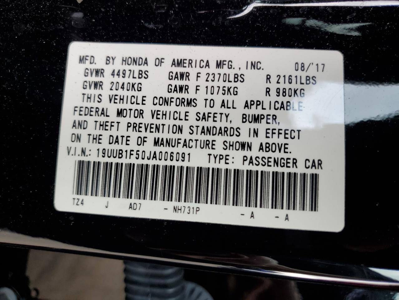 Цвет ЧерныйЦилиндры 4VIN 19UUB1F50JA006091Состояние Заводится и едет (проверено)Повреждения По бокамДата аукциона 2025-10-09