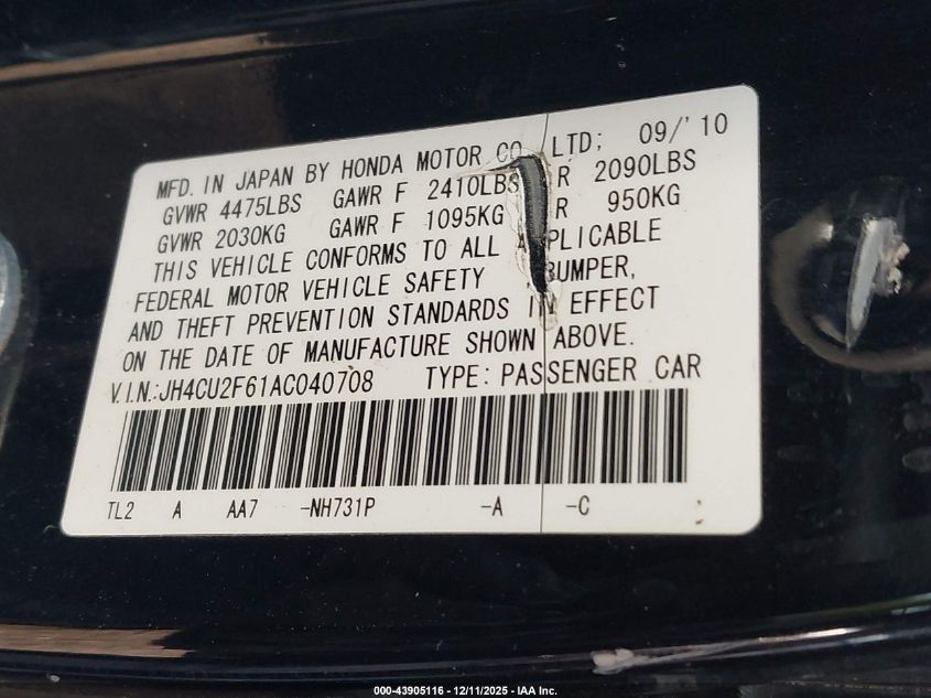 2010 ACURA TSX - JH4CU2F61AC040708, цвет - Черный, 2.4, Бензин, Передний привод из США