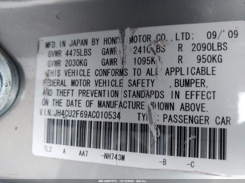 2010 ACURA TSX - JH4CU2F69AC010534, цвет - Серебряный, 2.4, Бензин, Передний привод из США