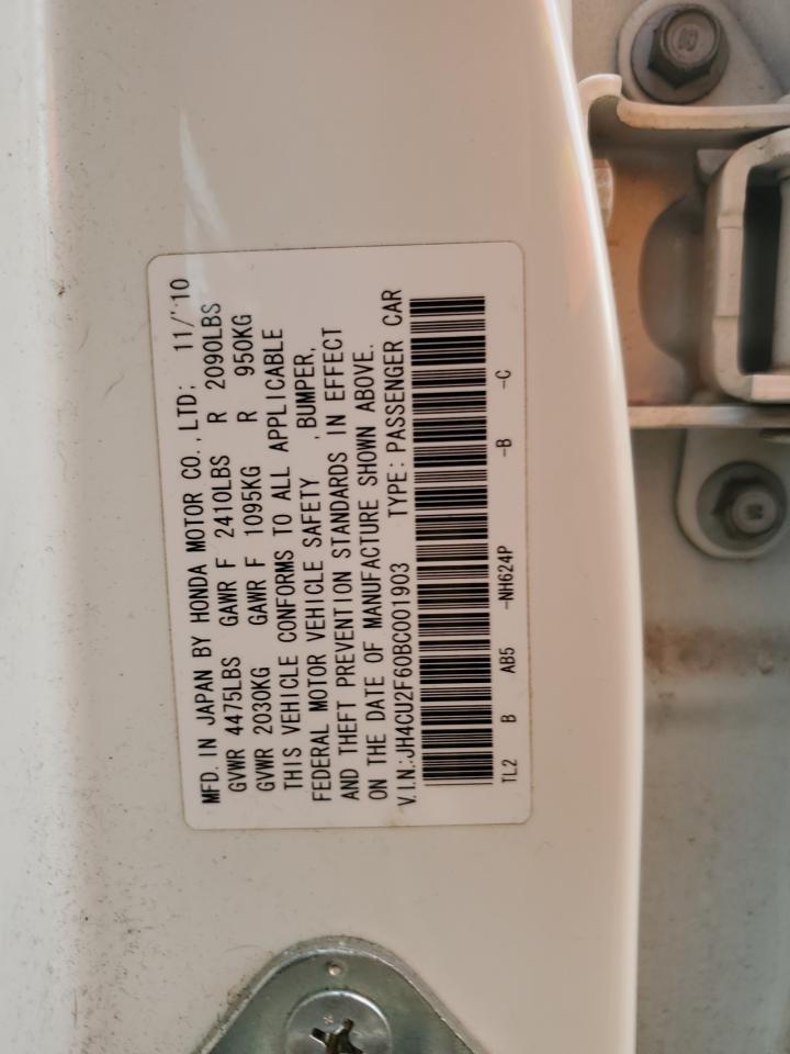 2011 ACURA TSX - JH4CU2F60BC001903, цвет - Белый, 2.4, Бензин, из США