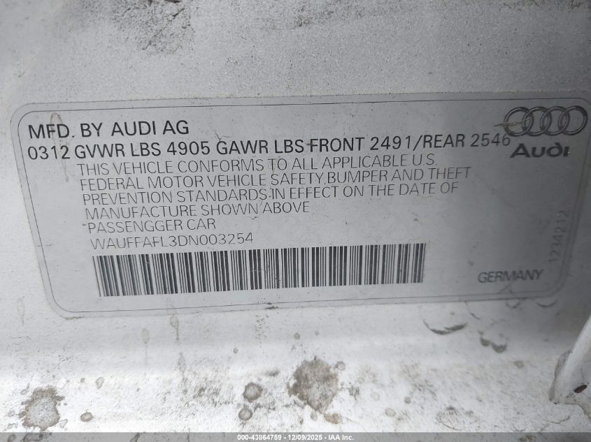2013 AUDI A4 - WAUFFAFL3DN003254, цвет - Серебряный, 2.0, Бензин, Полный привод из США