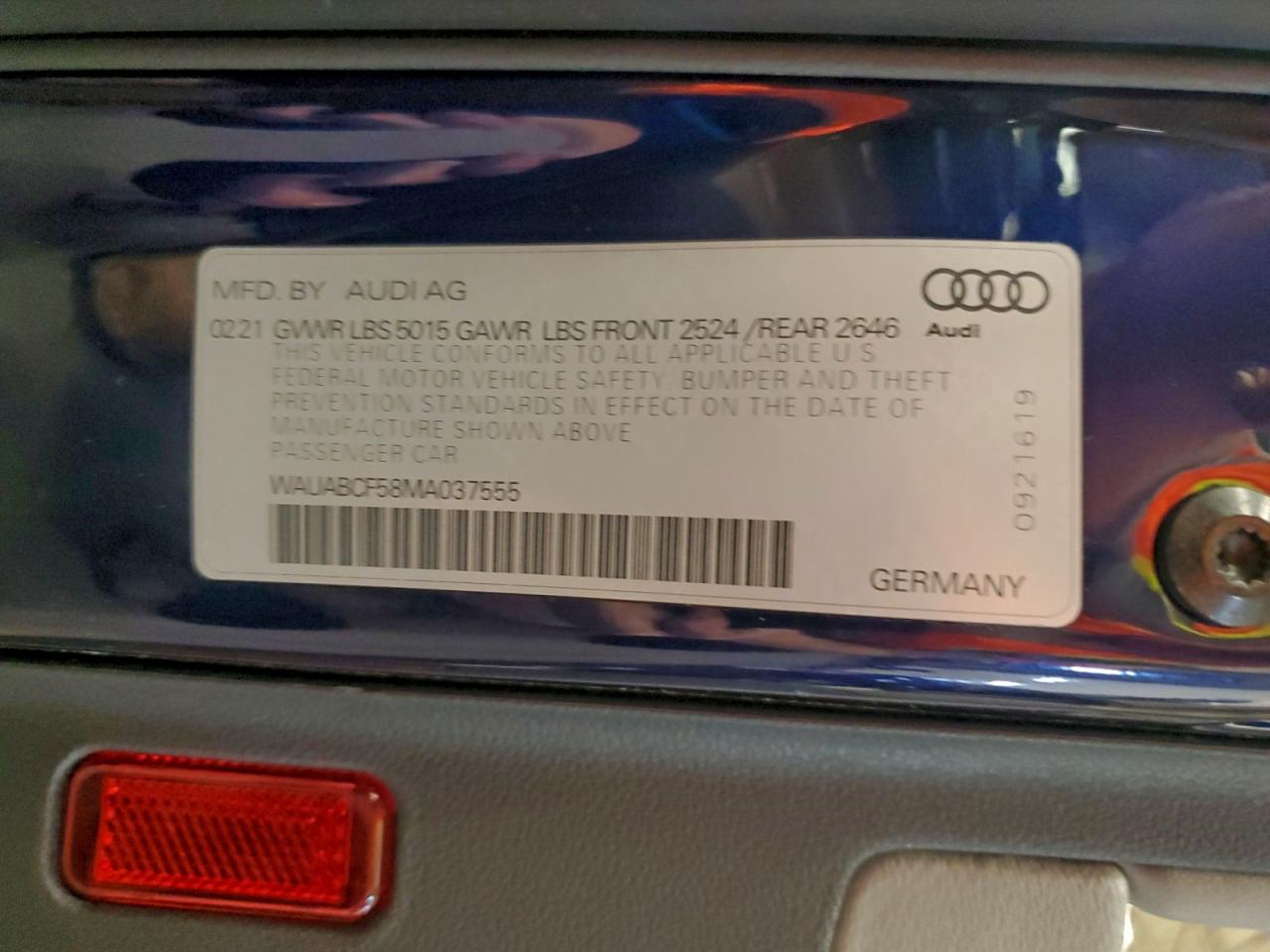 2021 AUDI A5 - WAUABCF58MA037555, цвет - Синий, 2.0, Бензин, Полный привод из США