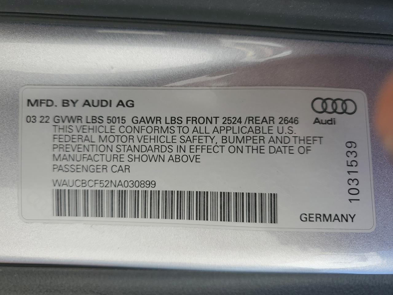2022 AUDI A5 - WAUCBCF52NA030899, цвет - Серебряный, 2.0, Бензин, Полный привод из США