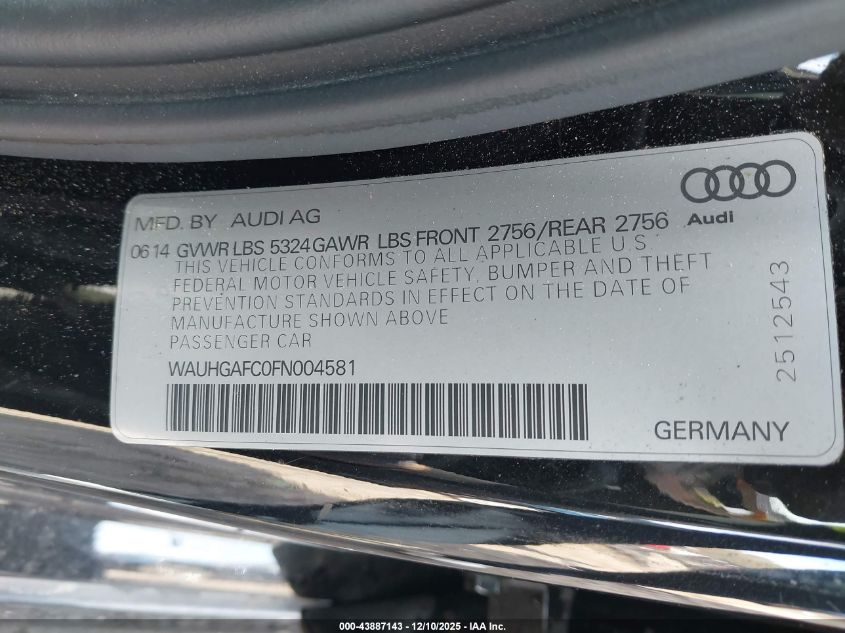 2015 AUDI A6 - WAUHGAFC0FN004581, цвет - Черный, 3.0, Бензин, Полный привод из США