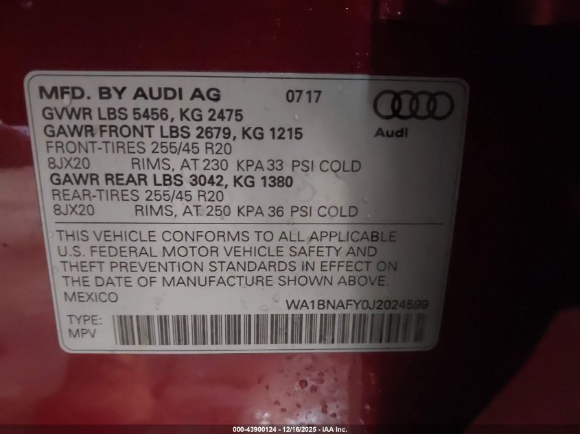 Цвет БордовыйЦилиндры 4Привод Полный приводVIN WA1BNAFY0J2024599Состояние НеизвестноПовреждения Неизвестно