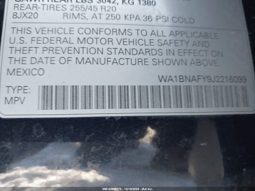 Цвет СерыйЦилиндры 4Привод Полный приводVIN WA1BNAFY9J2216099Состояние Заводится и едет (проверено)Повреждения Передняя или задняя