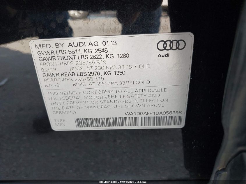 2013 AUDI Q5 - WA1DGAFP1DA056398, цвет - Черный, 3.0, Бензин, Полный привод из США