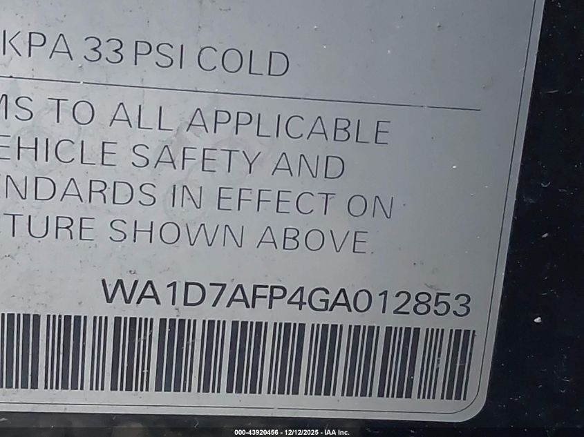 Цвет ЧерныйЦилиндры 6Привод Полный приводVIN WA1D7AFP4GA012853Состояние СтационарноПовреждения Передняя или задняя