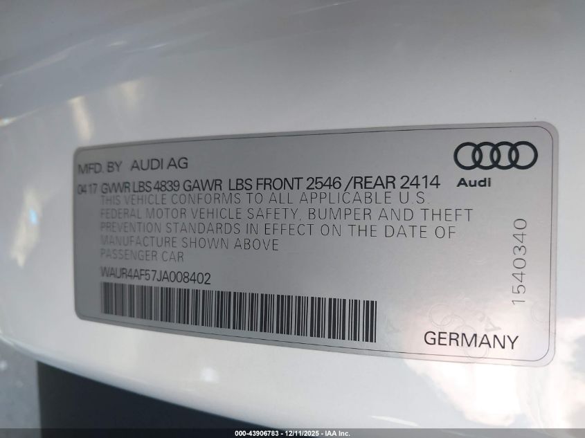 2018 AUDI S5 - WAUR4AF57JA008402, цвет - Белый, 3.0, Бензин, Полный привод из США