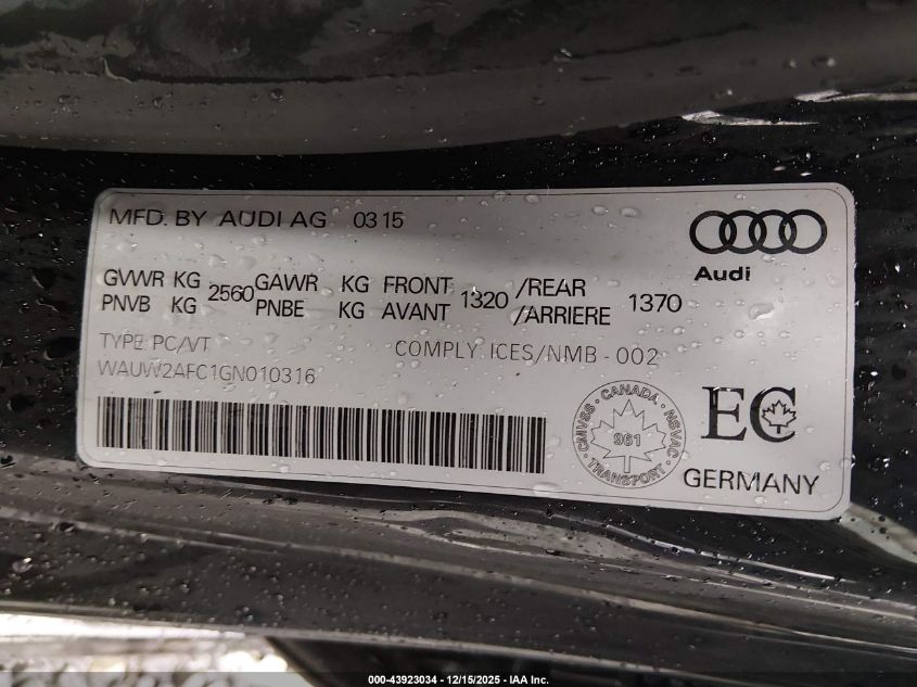 2016 AUDI S7 - WAUW2AFC1GN010316, цвет - Черный, 4.0, Бензин, Полный привод из США