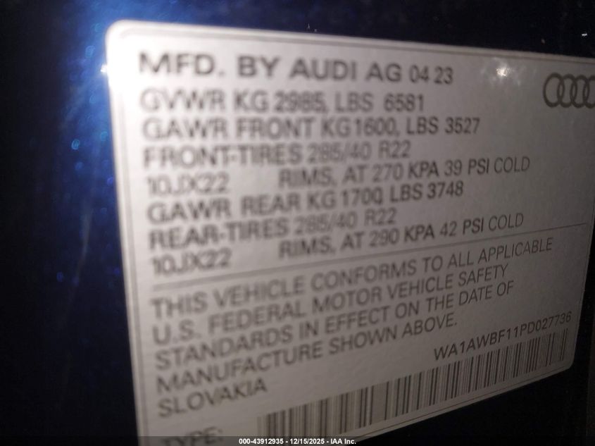 Цвет СинийЦилиндры 8Привод Полный приводVIN WA1AWBF11PD027736Состояние Заводится и едет (проверено)Повреждения Передняя правая